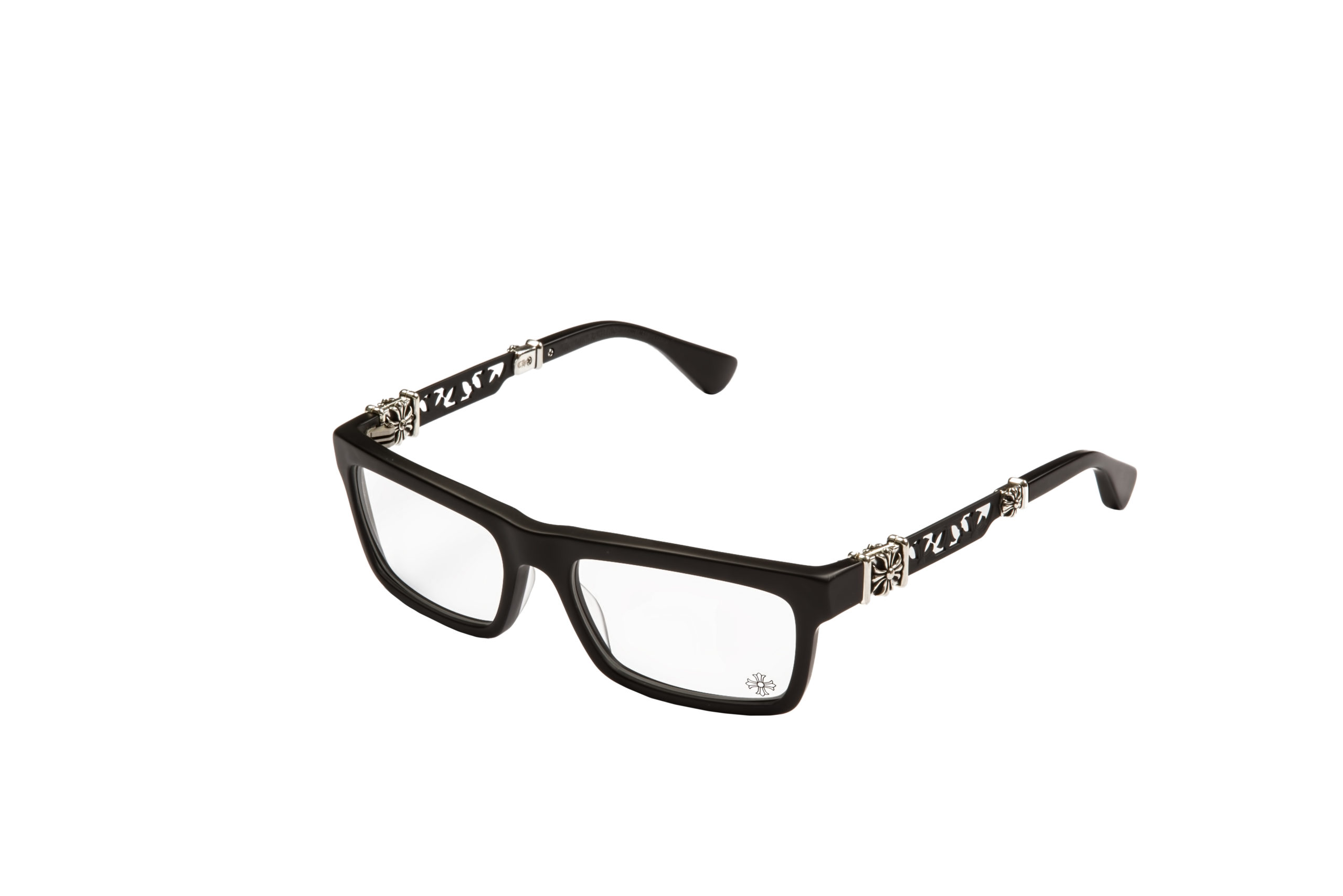Нередко все эти уникальные качества собираются в одной коллекции, результатом которой становятся одни из самых дорогих моделей очков и оправ. Это продемонстрировано и в коллекции медицинских оправ Chrome Hearts Pawsmuc. Оправы выполнены в полной раме, в классической прямоугольной форме, и оснащены качественными прозрачными линзами Carl Zeiss с антибликовой поверхностью. Рама изготовлена из тонкого слоя матового японского ацетата, а ее слегка вытянутые края украшены стильным орнаментом флер-де-лис, выполненным из серебра.