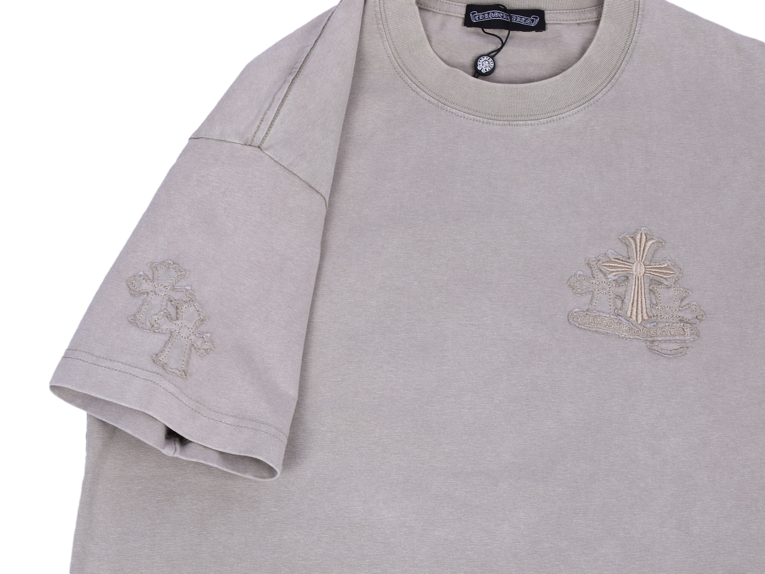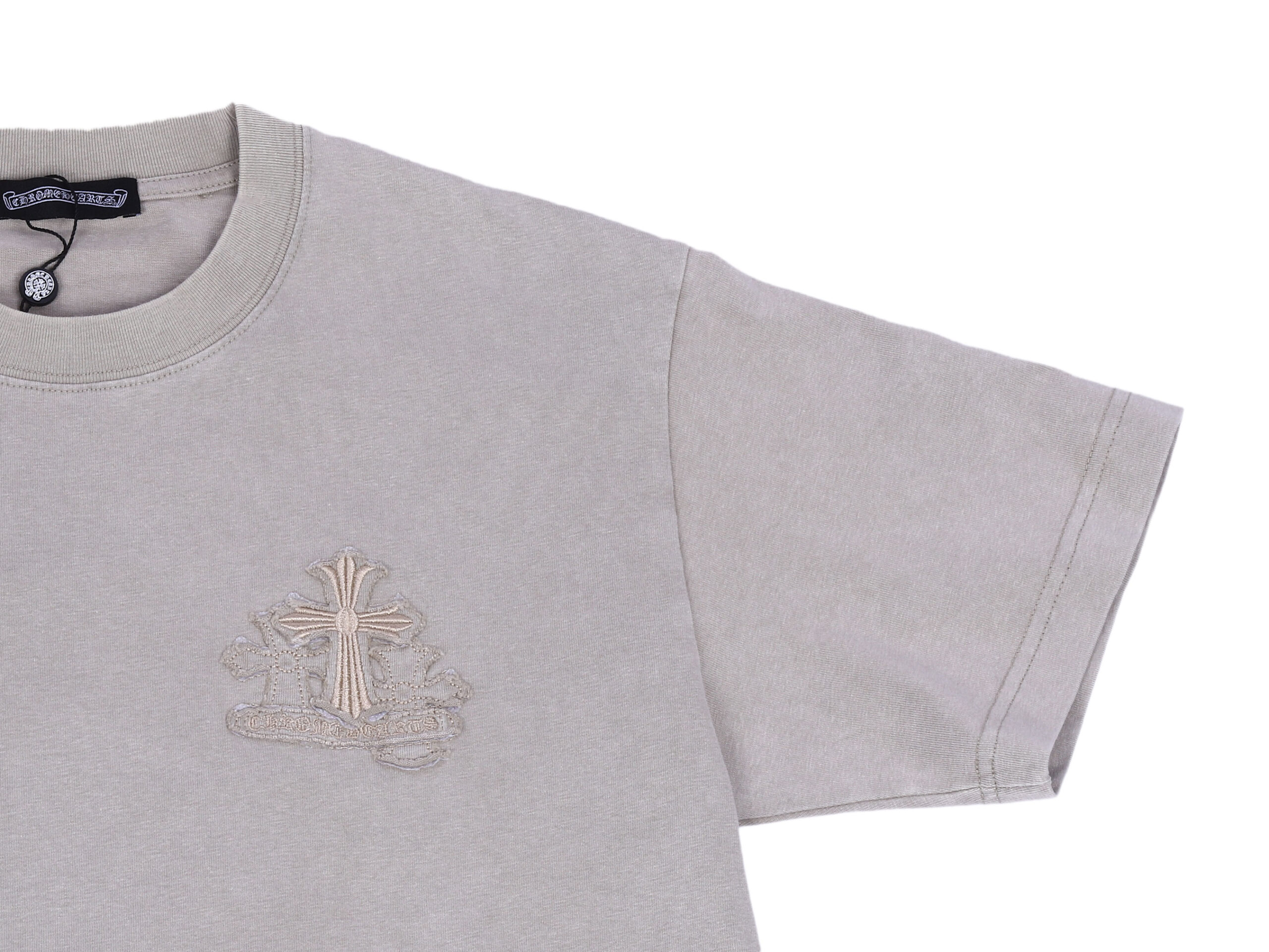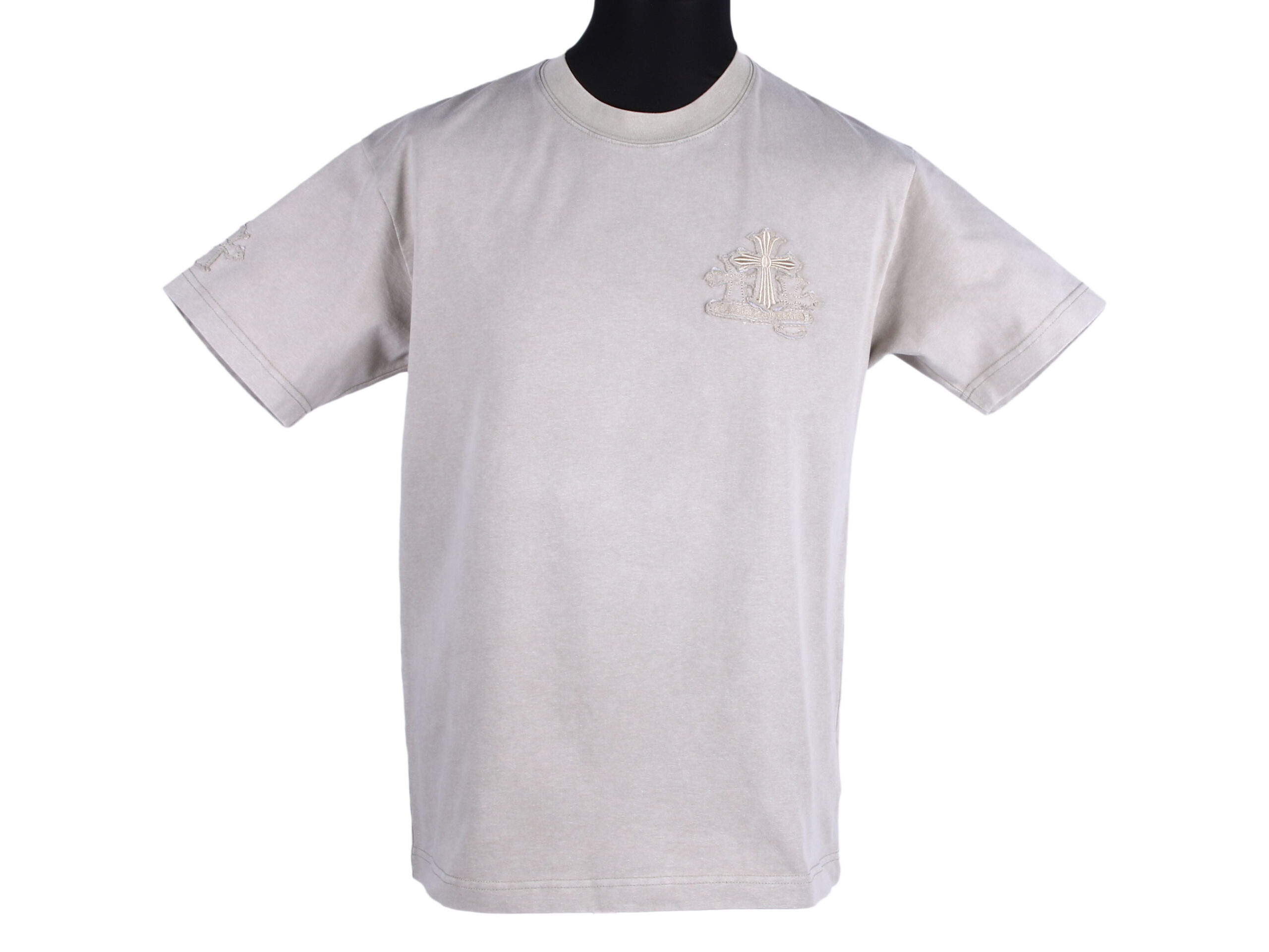 Первоначальная цена составляла 9,990.00 ₽.6,990.00 ₽Текущая цена: 6,990.00 ₽.Серая футболка Chrome Hearts с крестом 1630
