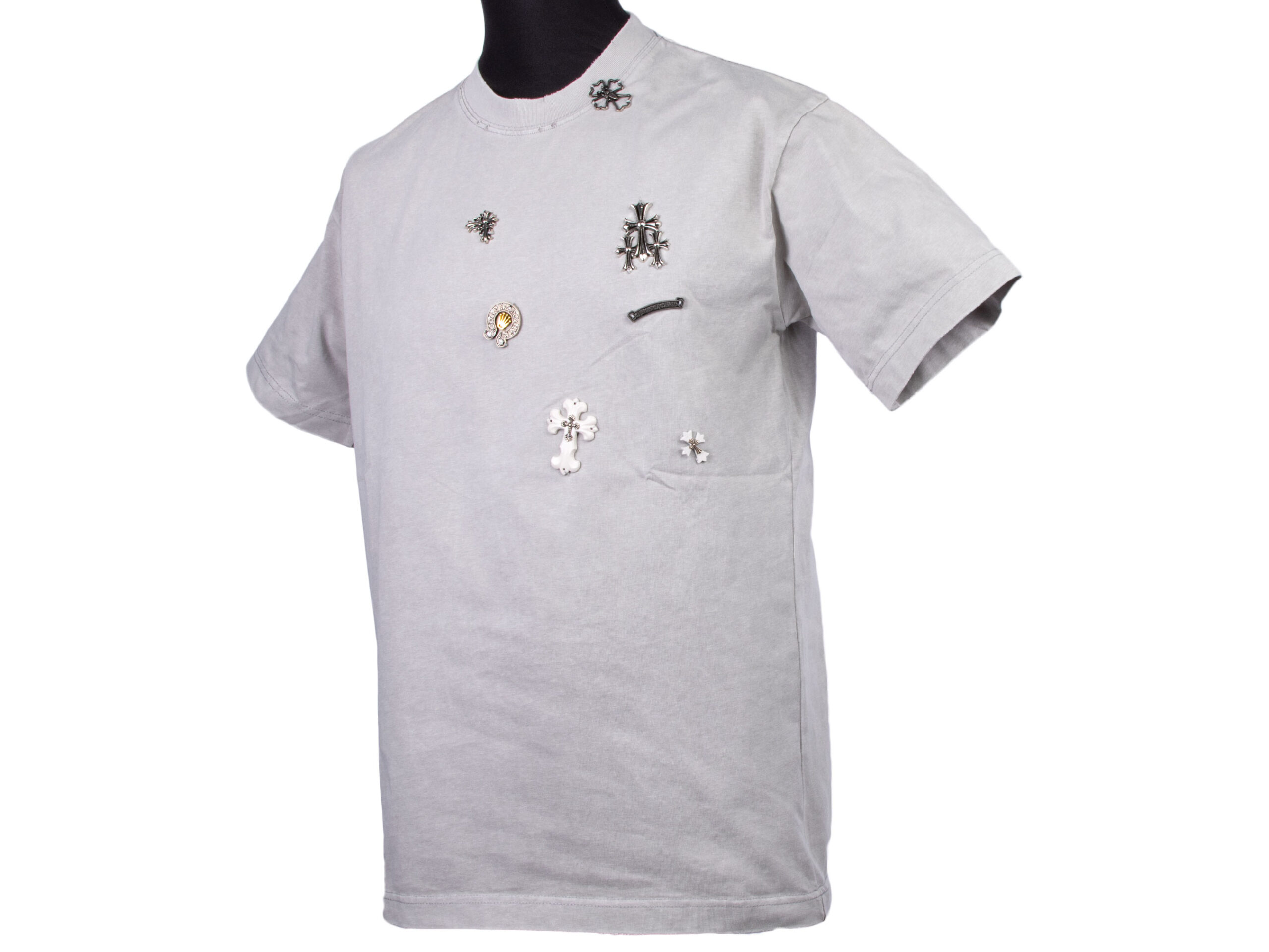 Первоначальная цена составляла 9,990.00 ₽.6,990.00 ₽Текущая цена: 6,990.00 ₽.Серая футболка Chrome Hearts с крестом 1630