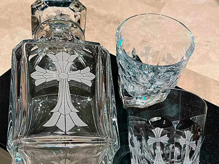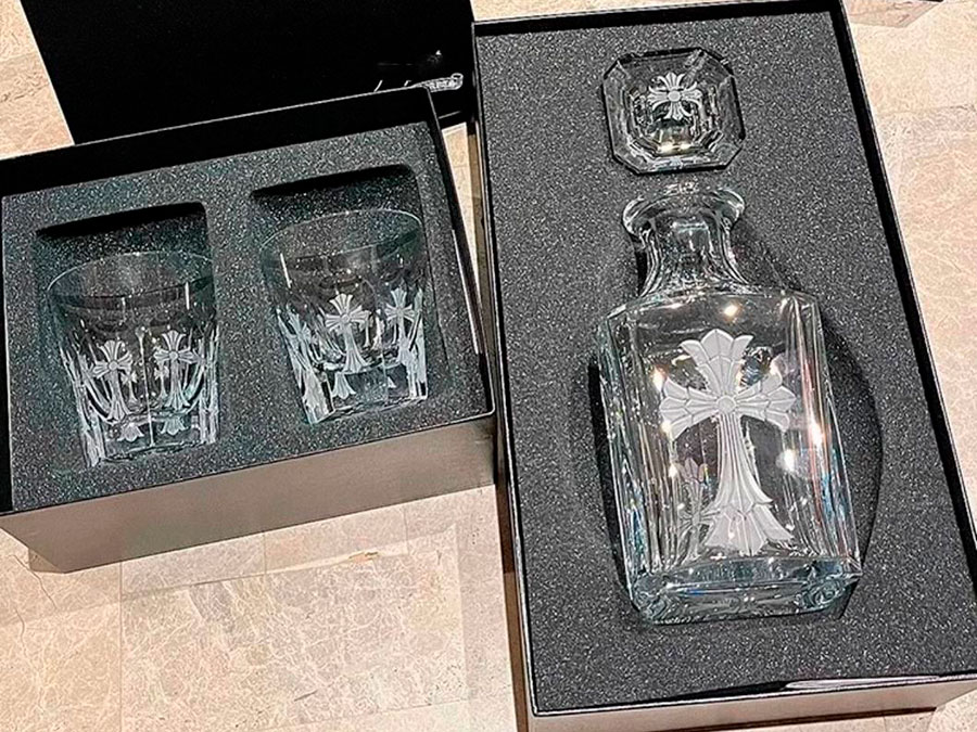 Kоллаборация Chrome Hearts и Baccarat стаканы и бутылка 2683