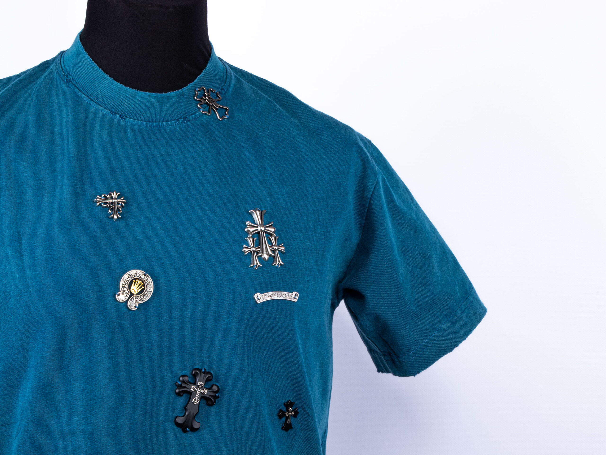 Первоначальная цена составляла 9,990.00 ₽.7,680.00 ₽Текущая цена: 7,680.00 ₽.Эксклюзивная футболка Chrome Hearts с крестами 1643