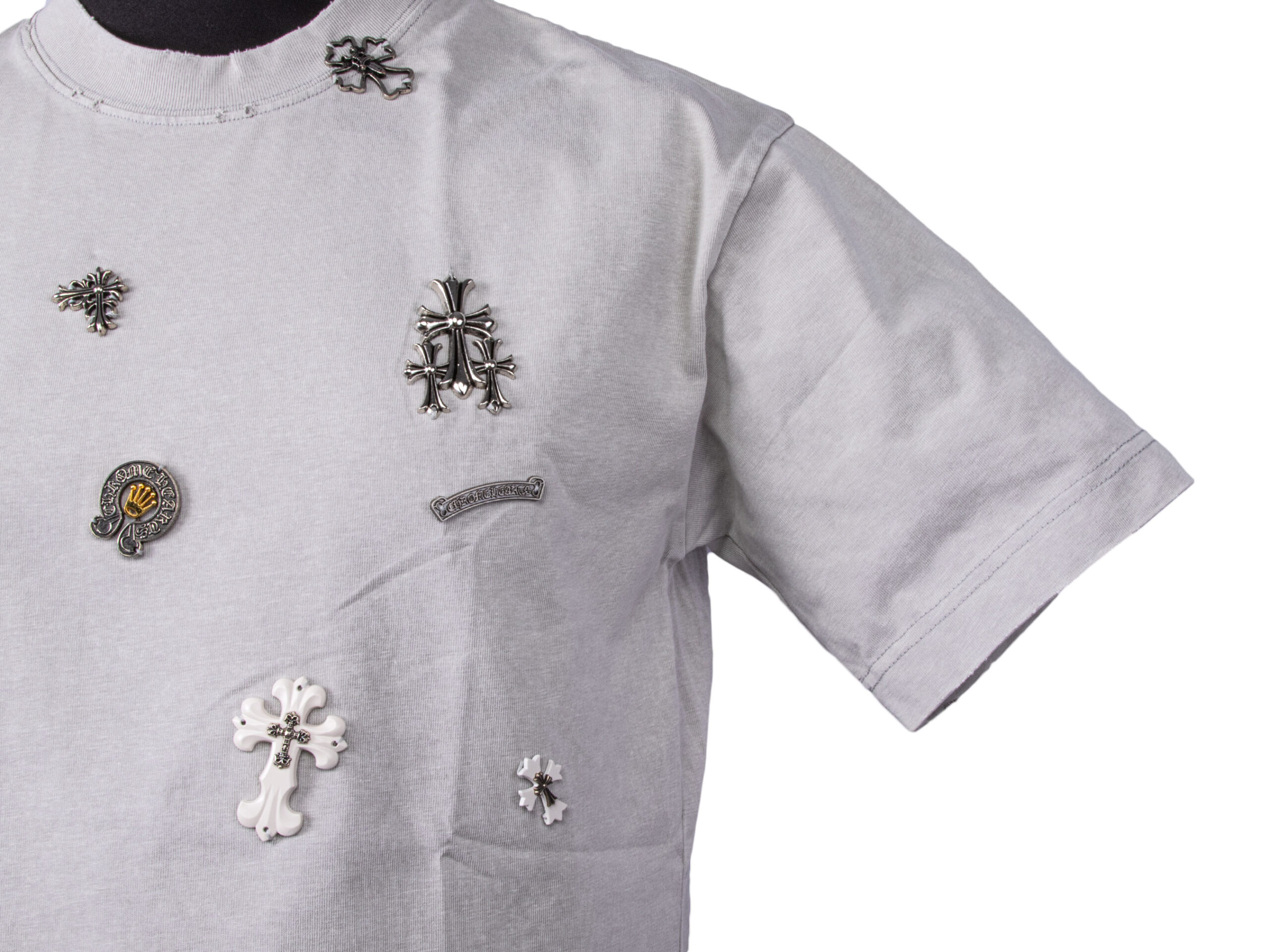 Первоначальная цена составляла 9,990.00 ₽.6,990.00 ₽Текущая цена: 6,990.00 ₽.Серая футболка Chrome Hearts с крестом 1630